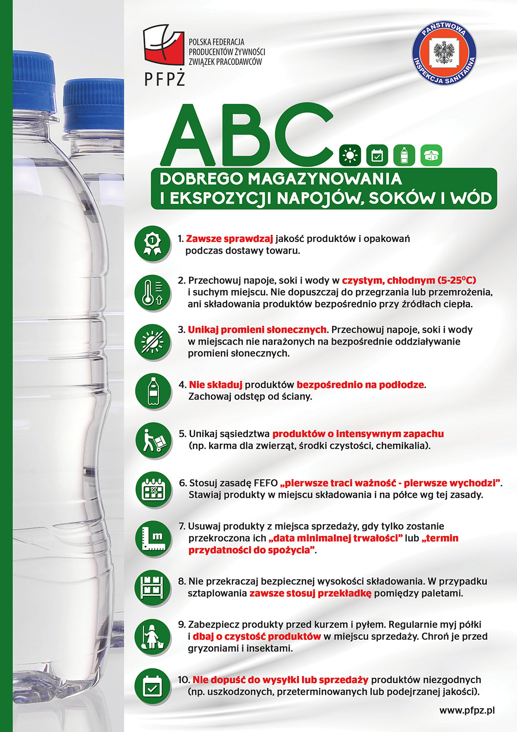 Podstawą wszystkich działań edukacyjnych kampanii był poradnik Dobrych Praktyk Magazynowania Napojów, Wód i Soków, opracowany przez PFPŻ i zatwierdzony przez GIS. Kodyfikuje on 10 kluczowych zasad zalecanych przez producentów, uwzględniając obowiązujące przepisy prawne i bezpieczne standardy rynkowe. Zasady te to: